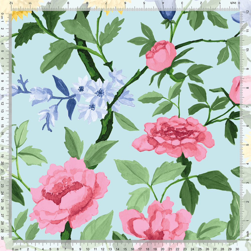 Esme Wallpaper in Pink on Duck Egg